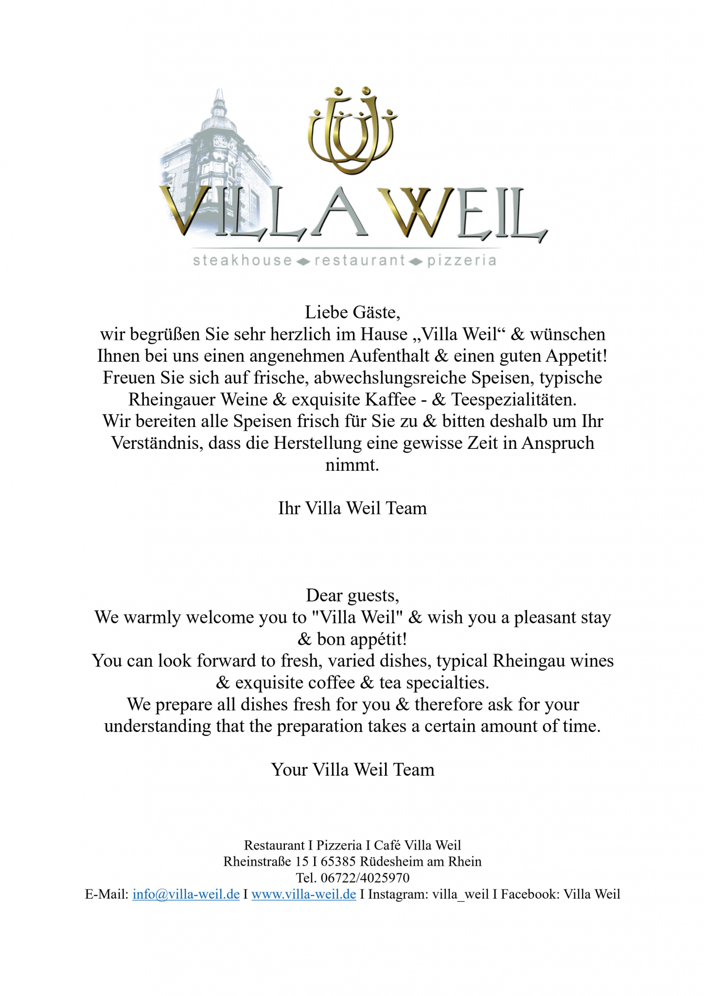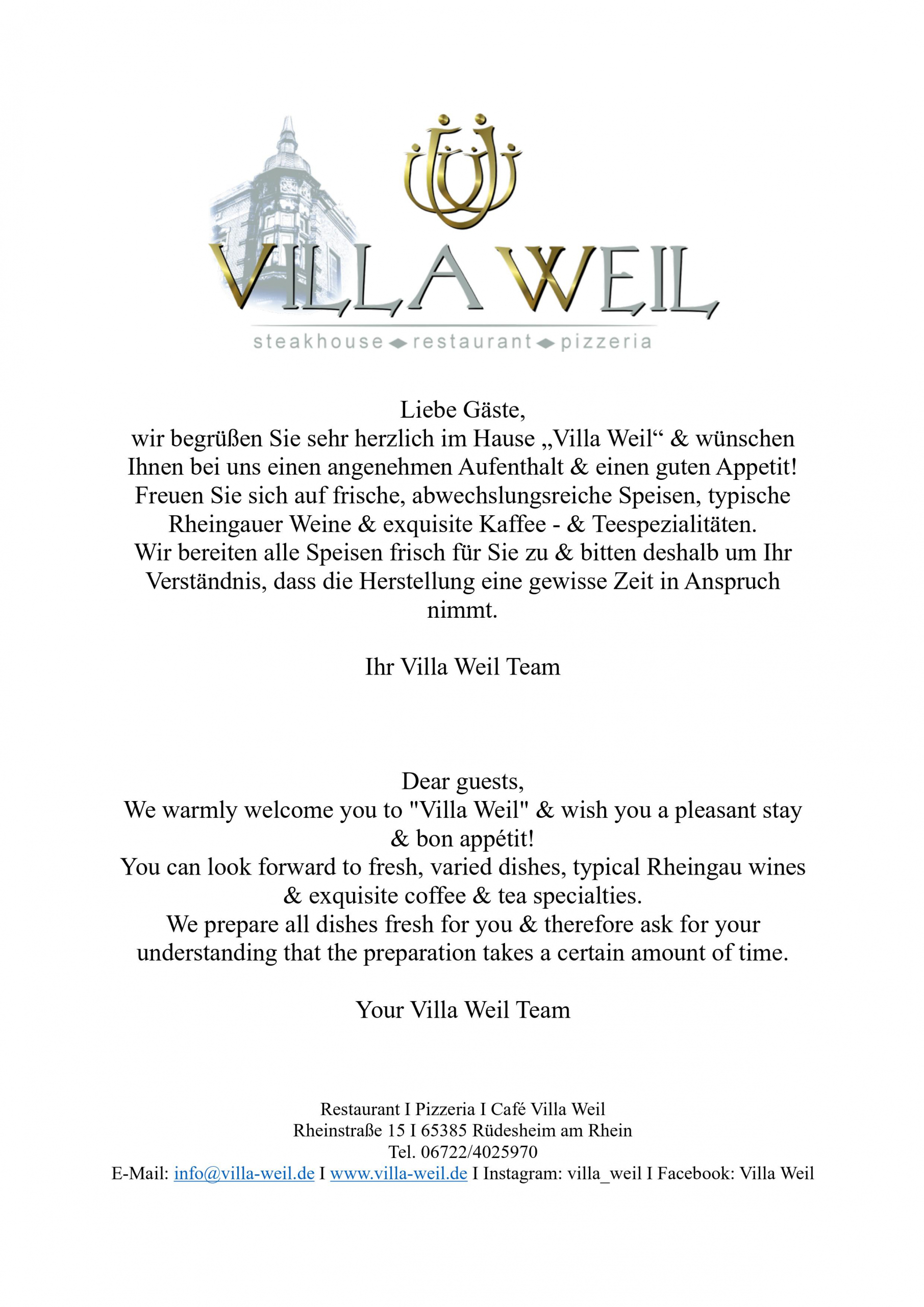 Welcome - Restaurant Café Villa Weil