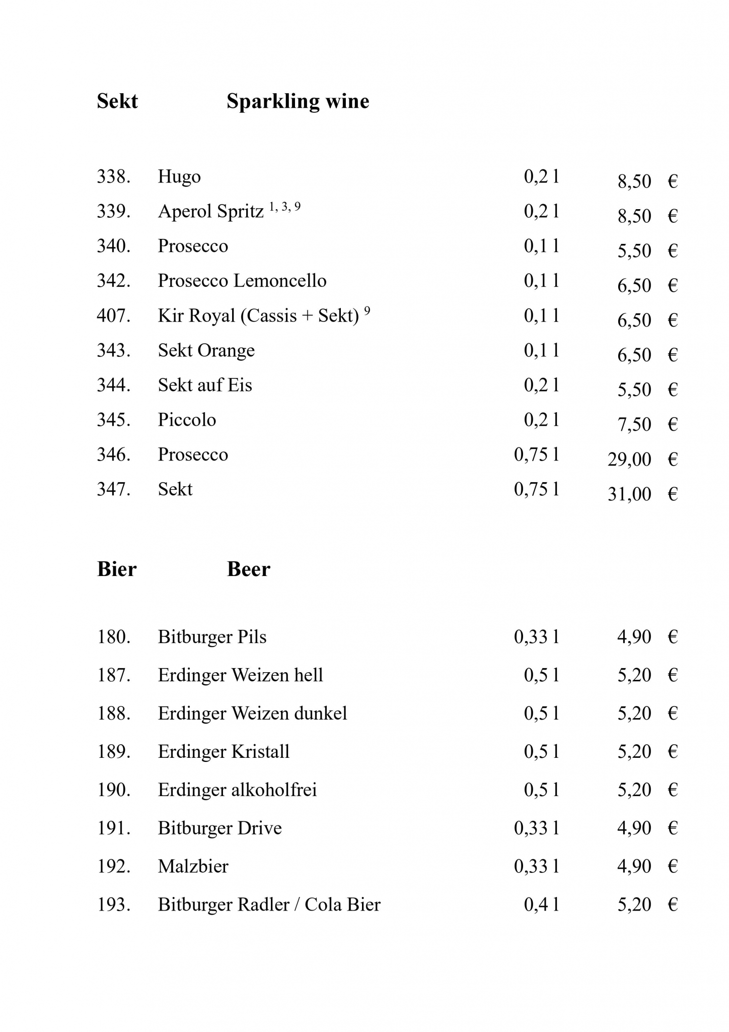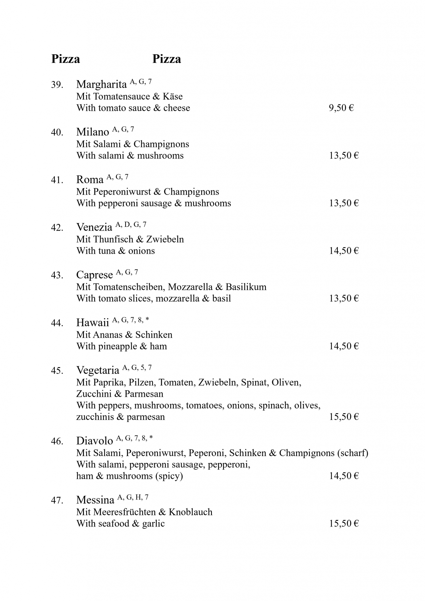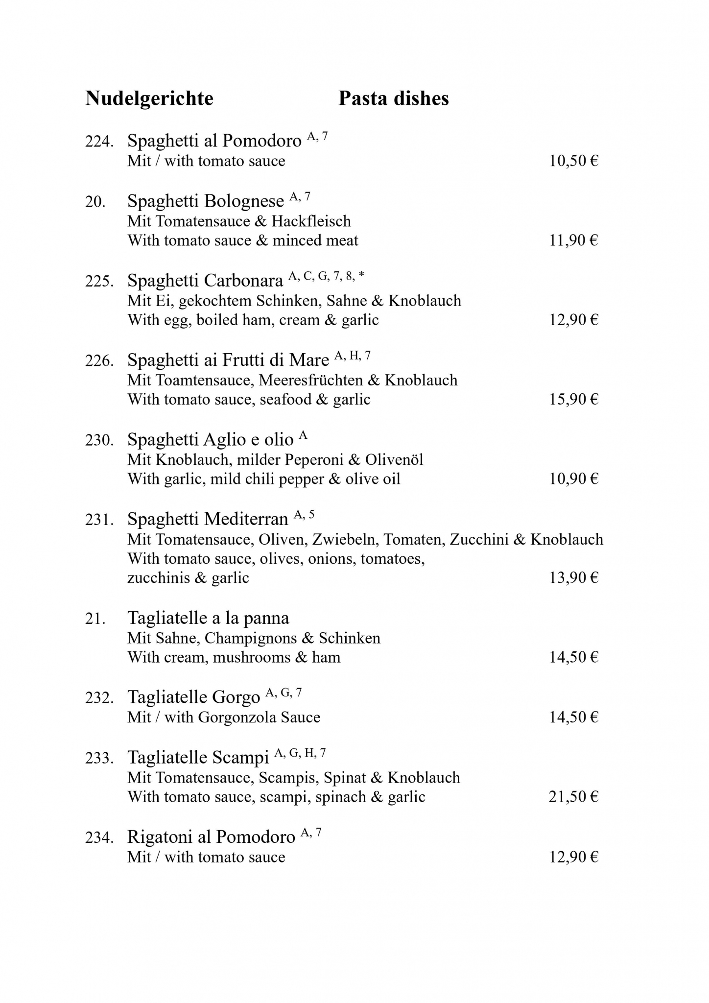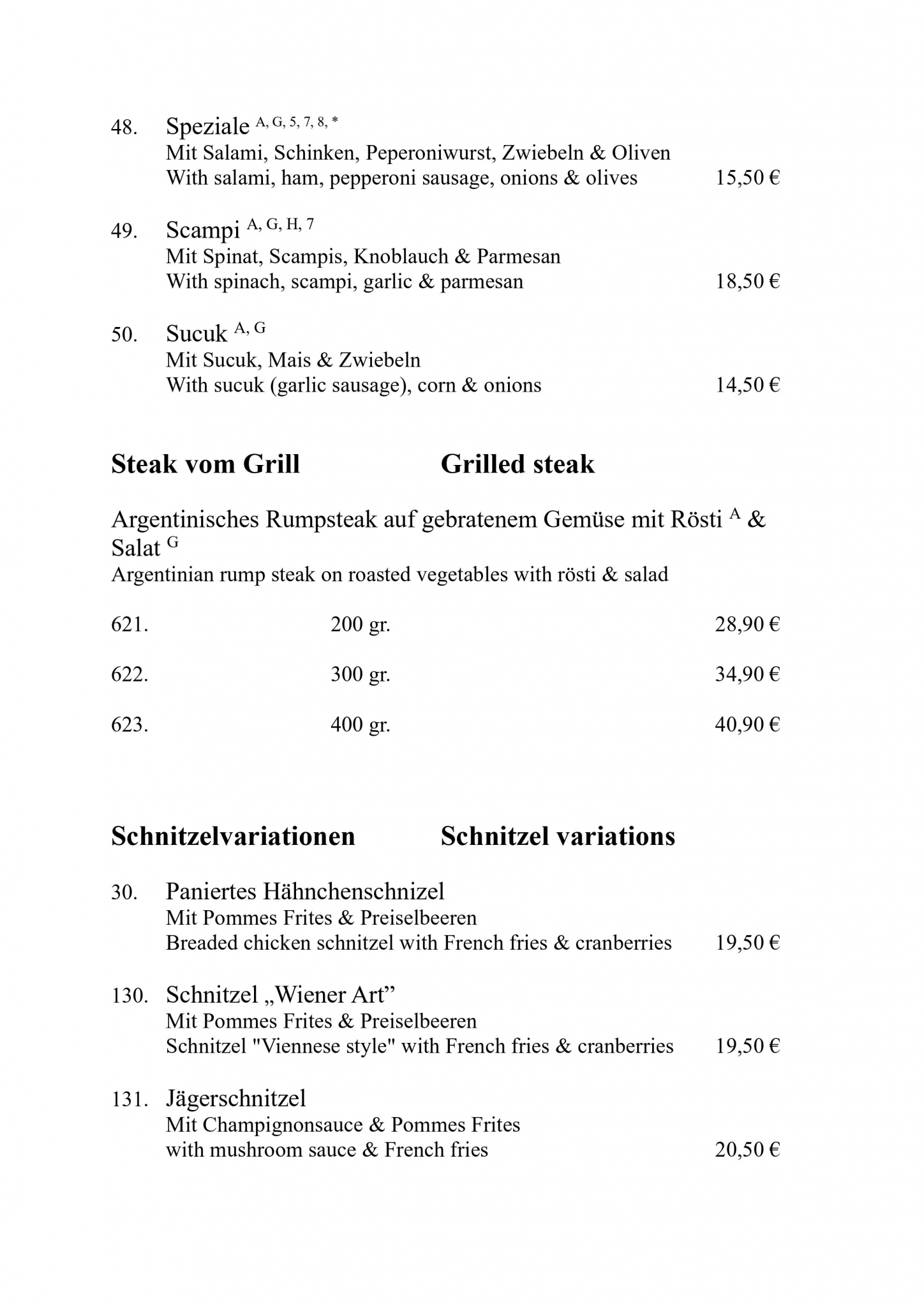 Speisekarte