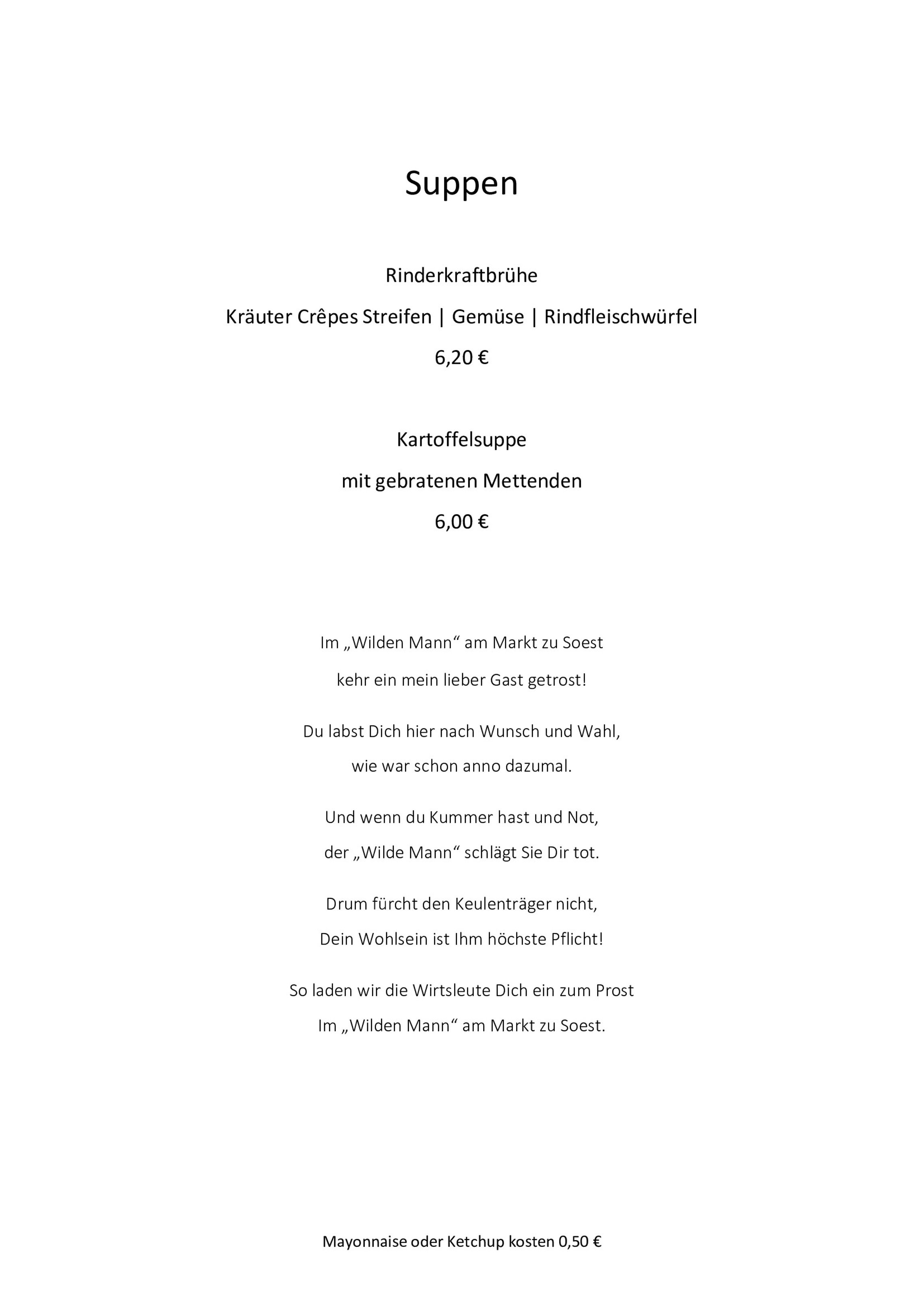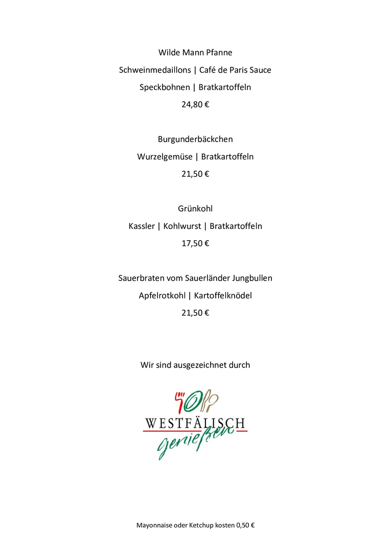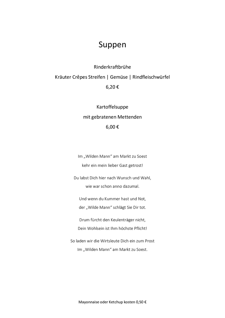 Speisenkarte | Im Wilden Mann Soest