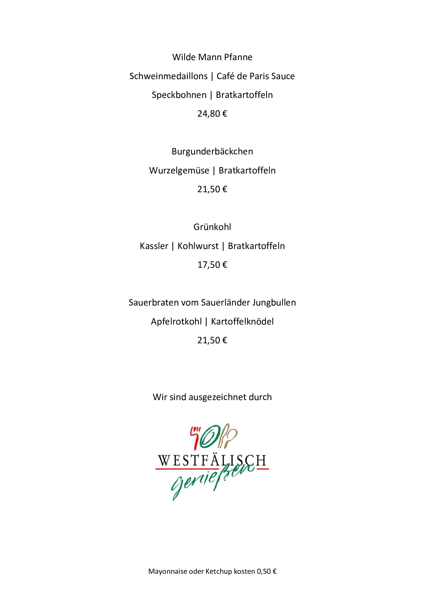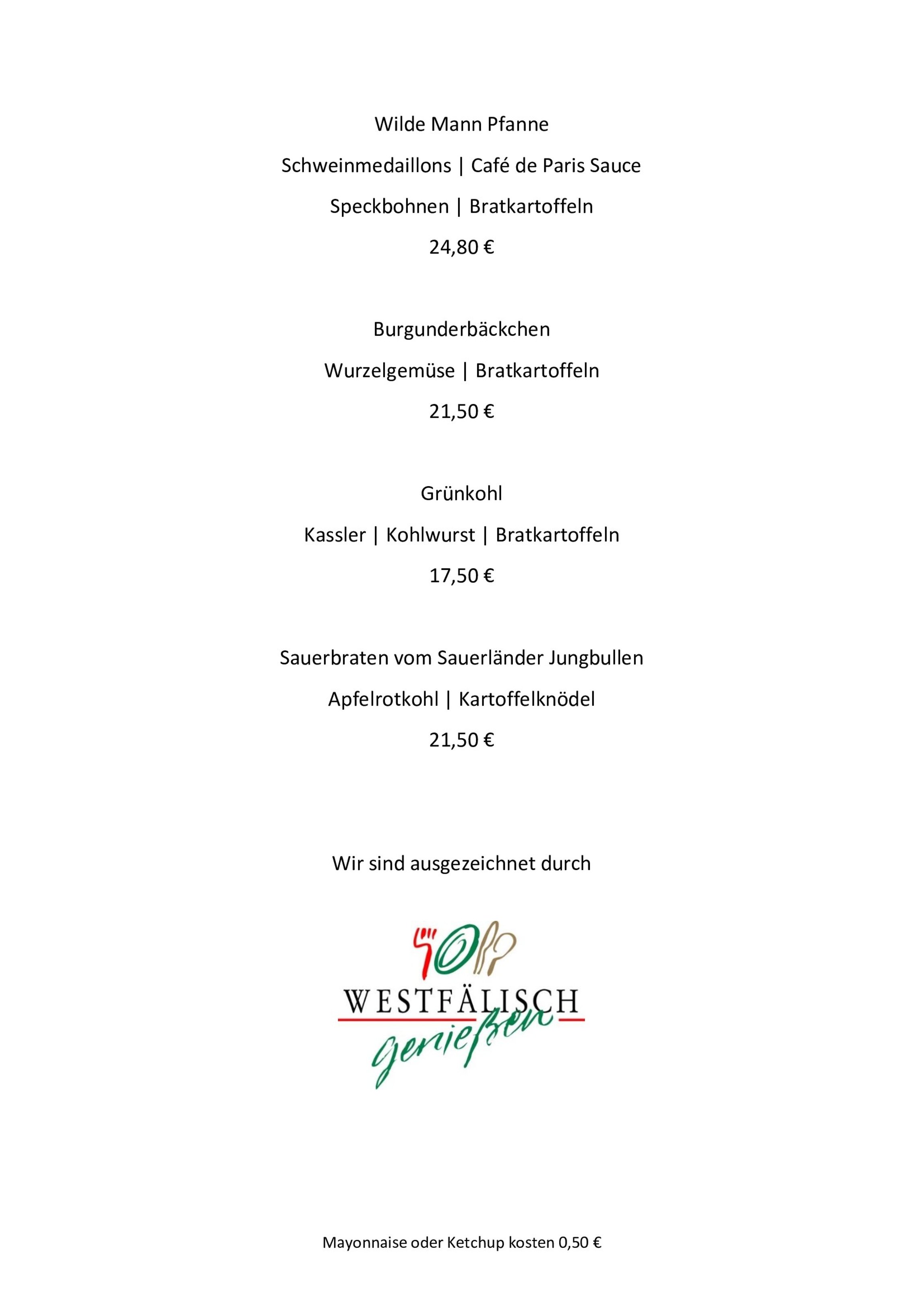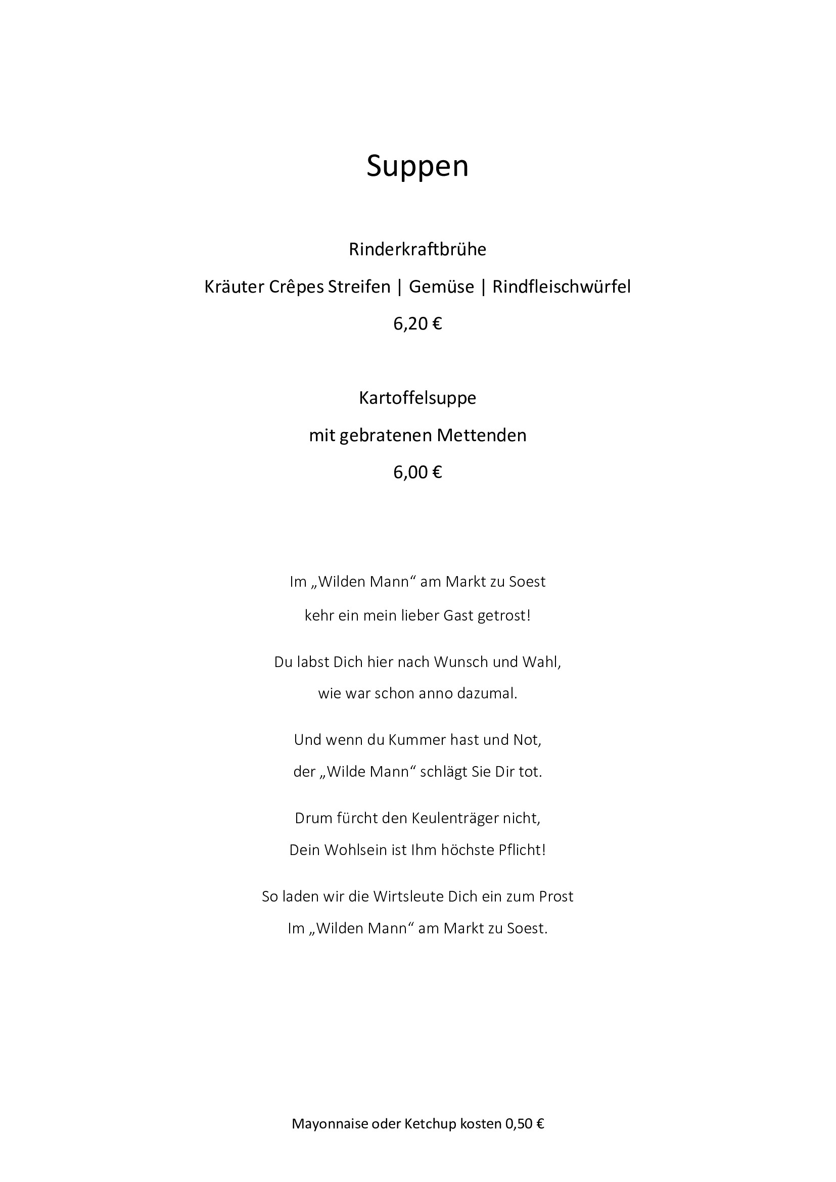 Speisenkarte | Im Wilden Mann Soest