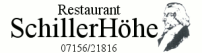 Restaurant Schillerhöhe, Inh.Karin Feldmeier, Gut bürgerliche deutsche und internationale Küche, Dienstag Ruhetag, Öffnungszeiten von Mittwoch bis Montag von 11.00h bis 23.00h, warme Küche von 11.30h bis 14.00h und 18.00h bis 21.15h, Samstag, Sonntag und an Feiertagen durchgehend warme Küche.